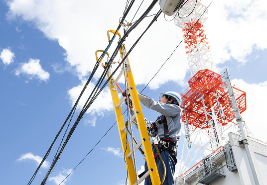 インフラエンジニアとして、NTTビル内外に設置された光ケーブルやルータ、電話機などの設備の保守・運用に従事。主な業務は、設備故障時の保守・復旧対応や設備の老朽化に備えた予防保全、またお客さま宅やNTTビル内で通信装置や配線などの不具合が発生した際の修理業務です。状況によっては高所作業車やフルハーネスを使用し、屋外での柱上業務を行うことも。これらの経験を重ねる中で、安定した通信サービスの提供と社会インフラを支える重要な役割を担っていること、そして個人では成し得ない大きな事業に取り組むことの重要性を実感していきました。