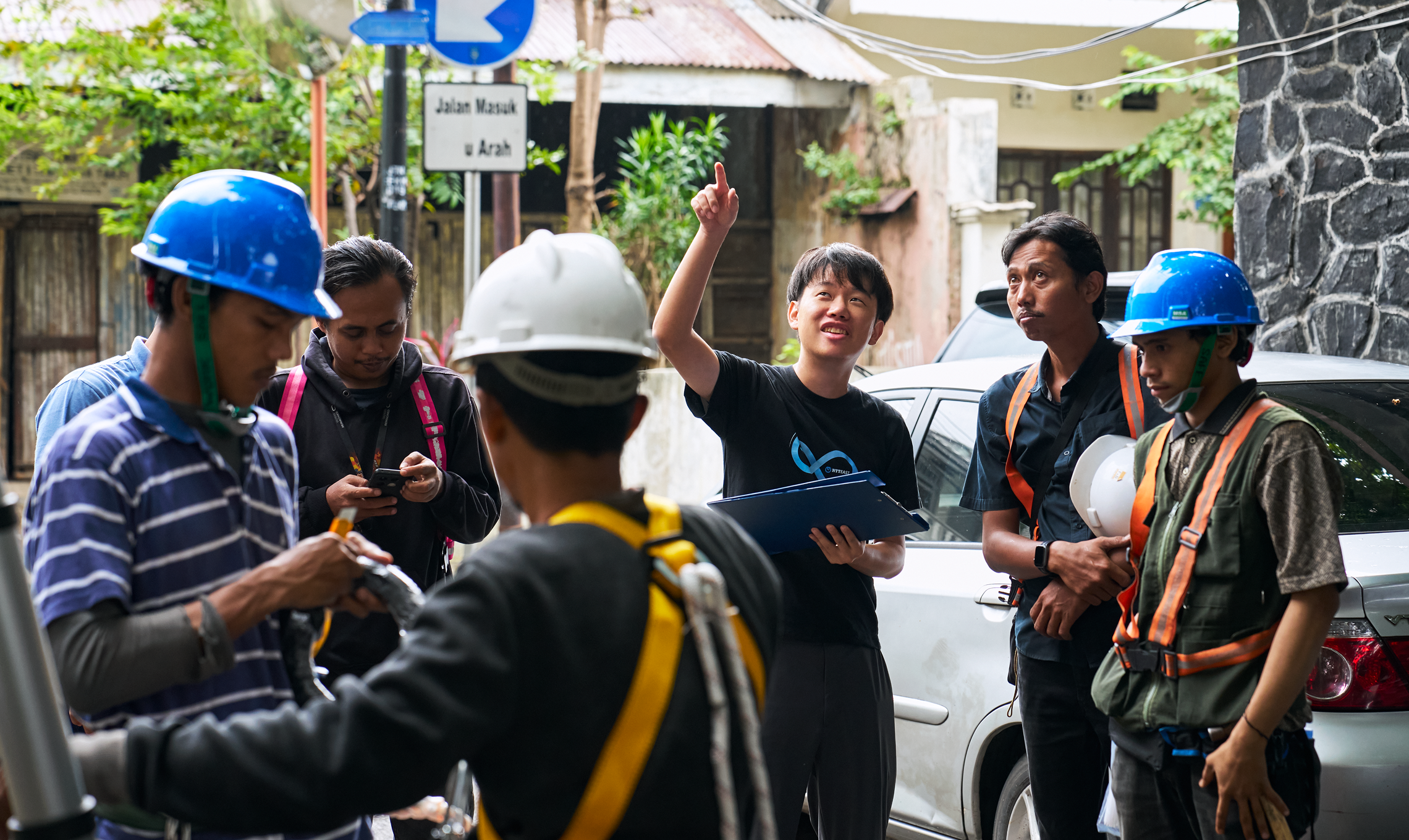 課題解決において、日本では仕組みによって丁寧に解決する傾向がある一方、インドネシアではマンパワーでスピーディに解決するという文化の違いを実感しています。現在、私は現地の強みを活かしつつ、日本で培ってきたドキュメントやマニュアルの整備といった仕組みによって、業務の属人化を低減し、「つながるあたりまえ」を実現できる組織づくりを目指しています。また、日本とは異なる環境で前向きに課題に向き合えるのは、私が赴任する以前より着任している先輩方がいるお陰です。先輩方が普及させてきた通信インフラを、現地スタッフとともに更に広げていきたいと思っています。