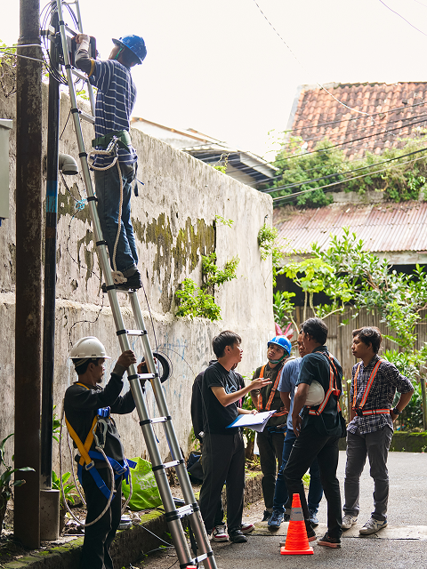2024年7月より、NTTイーアジアを通じてインドネシアのWEAVE社への技術支援を開始。2025年4月からNTT東日本として出資が決定し、2025年10月からNTT-ME社員が4名で、インドネシア現地で指導者育成を開始しています。その背景にある目的は、インドネシアにおけるインターネット世帯普及率の向上です。日本とは異なる環境や文化の中で、日本同様に育成することは容易ではありませんが、文化や環境の違いを認め、乗り越え、着実に取り組みを推進。特に現地スタッフの視点に寄り添うことを心がけ、彼らの自主性や主体的な成長を促す姿勢を大切にしています。将来的には、現地で自立した指導者が育ち、スタッフ自身が主体的に技術力向上に取り組める体制の構築を目指しています。