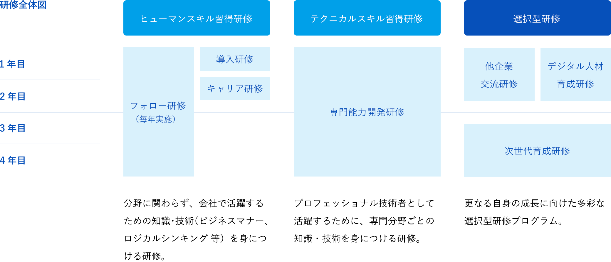 プロフェッショナルな技術者として成長し活躍していただくために、様々なプログラムを用意。