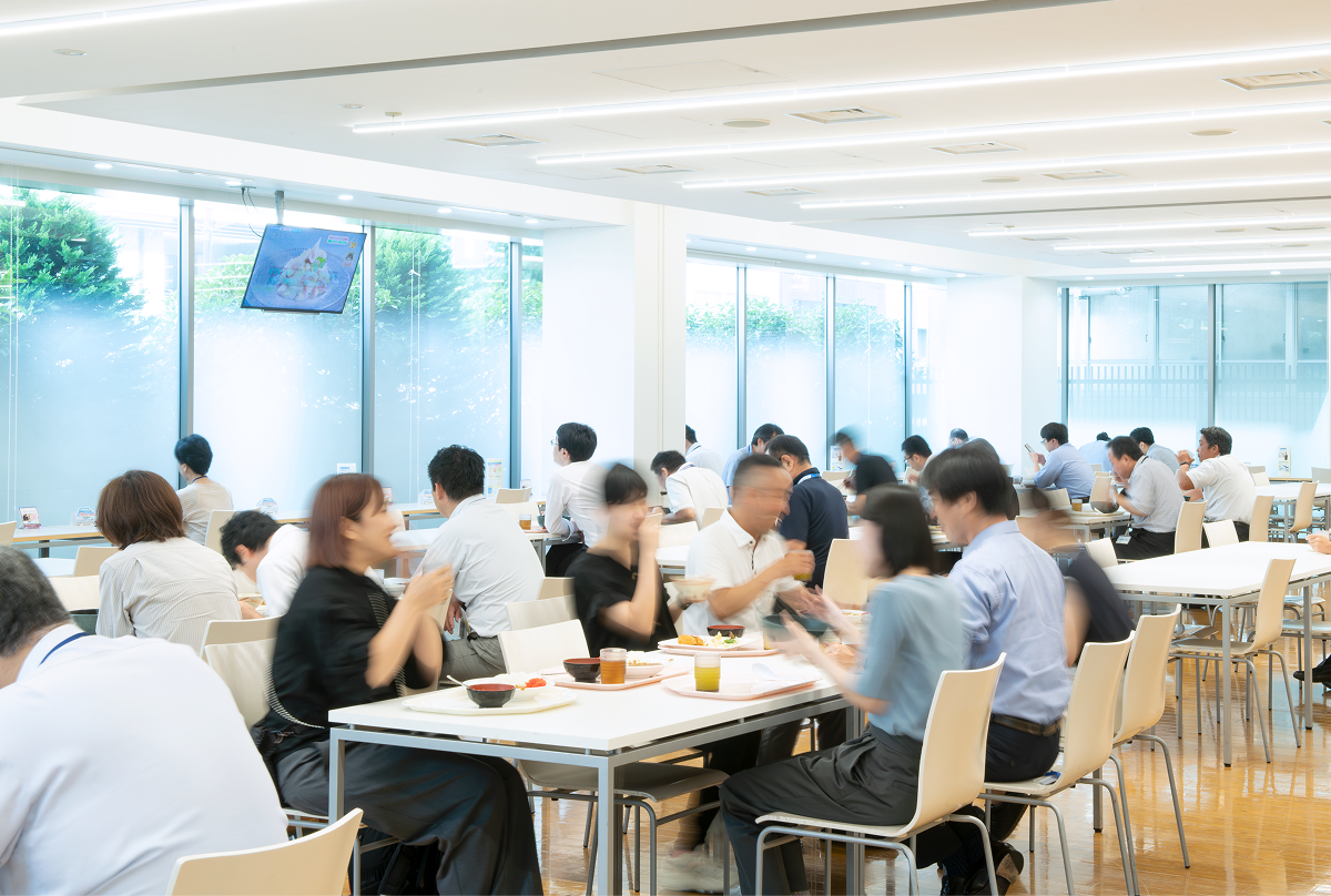 多くの社員が利用する食堂は、多彩なメニューが揃い、