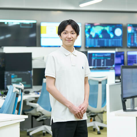 システムを守る最前線に。現在はセキュリティ監視業務を担当しています。膨大なログや通信データを常時監視し、不審な兆候があれば速やかに調査・対応するのが役割です。攻撃は自動化・巧妙化が進んでおり、判断の遅れが大きな被害につながるため、一瞬の油断も許されません。日々の業務は緊張感がありますが、それだけ社会的意義を実感できる仕事だと感じています。入社当初は脆弱性診断業務にも携わりました。その際に先輩から「システムの気持ちになって考えること」の大切さを教わったことが、今も仕事の軸になっています。単に脆弱性を探すのではなく、攻撃者はどんな情報を狙うのか、システムがどう応答するのかを想像することで、診断の深度が変わるという学びでした。この視点は監視業務でも活かされ、アラートを処理するだけでなく、その裏にある意図や脅威を読み取る姿勢につながっています。