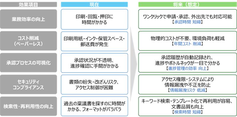 - 紙やメールによる回覧および承認作業の煩雑さによる時間的制約